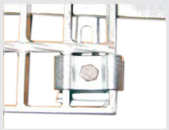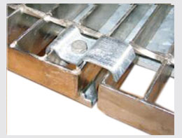 Type B-comprising of a top clip with double saddle (of which one saddle cansecure the two bearing bars of adjacentgratings),a lower clip with teeth and an M8 inner-cricular-stud bolt.