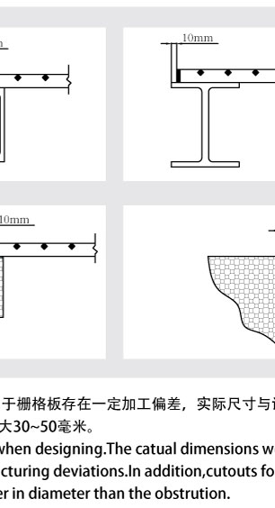 簡(jiǎn)單介紹:鋼格板的安裝 鋼格板的安裝固定可用焊接和安裝夾兩種方法。對(duì)永久性不需拆卸,可采用焊接,將其焊接在支承物上。具體位置,在板的每個(gè)角度第一根扁鋼上,焊縫長(zhǎng)不小于20毫米,高不小于3毫 米的角焊。采用安裝夾具有不破壞鋅層和拆卸方便的優(yōu)點(diǎn),可使用新橋牌安裝夾固定,每塊板至少應(yīng)采用四個(gè)安裝